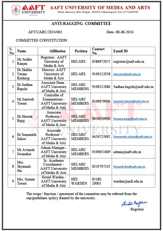 Anti-Ragging Committee (ARC) | Anti-Ragging Squad (ARS)